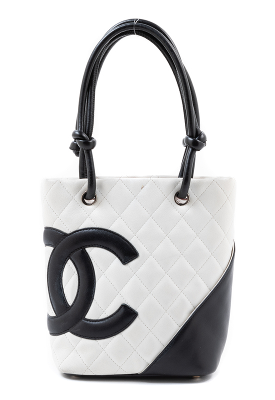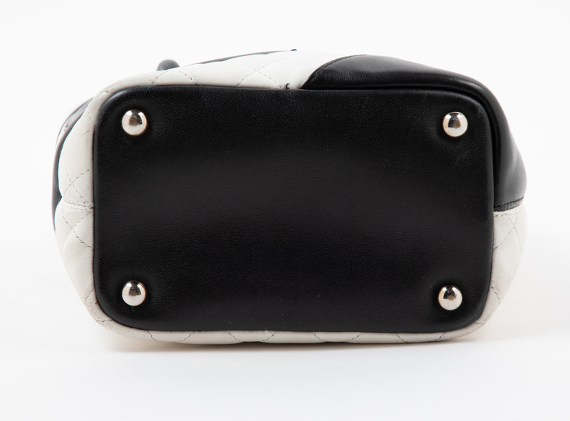 Chanel White and Black Quilted Cambon Tote Bag, 2011 6" L x 3.5" W x 7.5" H; top handle: 6"