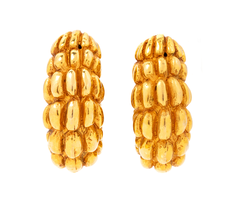 textured hollow C shaped earclips. Stamp:Dominique Aurientis, Paris.