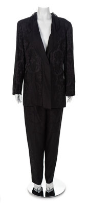 Christian Dior Black Patterned Pant Suit, 1980s Size label: 46 (pants)