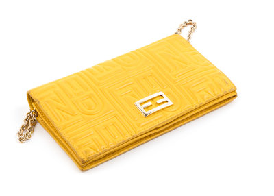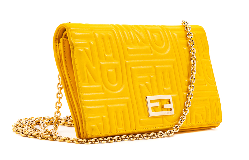Fendi Yellow Monogram Embossed Leather Wallet/Shoulder Bag, 1990s