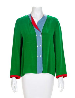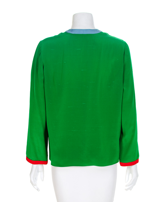 Geoffrey Beene Double-Breasted Green Blouse, 1980-90s Size label: 12