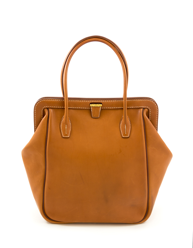 Gold plated hardware, dual rolled handles, contrast stitching detail, a leather clasp top closure and three interior compartments. Square Q blindstamp. Together with a dustbag. Stamped: Herms