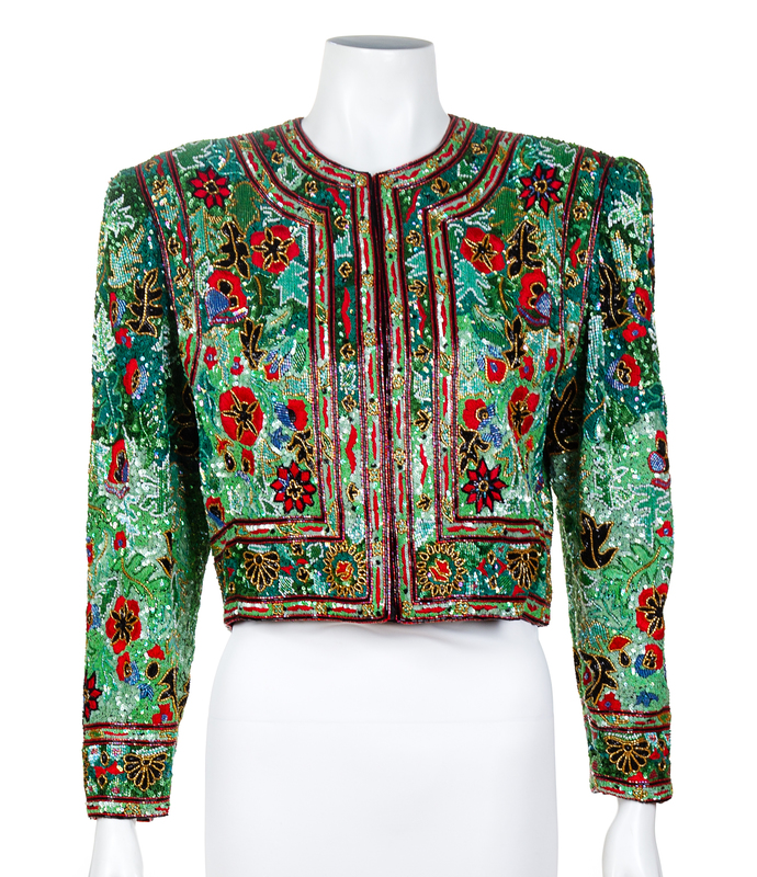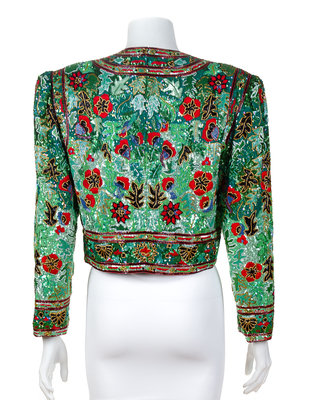 Jeanette for St. Martin Green Beaded Sequin Bolero, 1980-90s