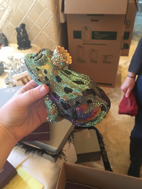 Judith Leiber Collector's Edition William Frog Prince Minaudiere 7" L x 5" W x 5" H; Strap drop: 9.5"
