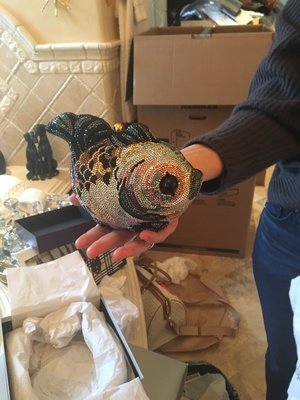 Judith Leiber Fish Minaudiere 5.5" L x 2.5" W x 5" H; strap drop: 18.5"