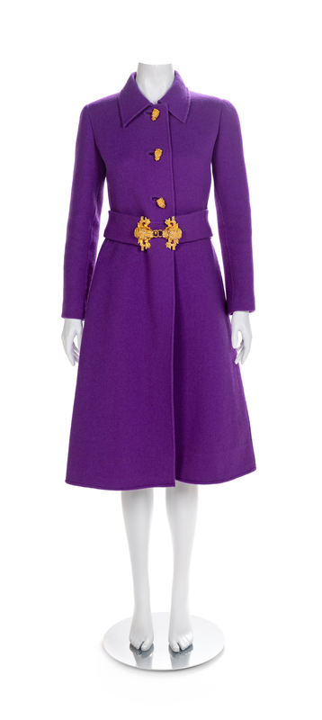 La Mendola Rome Purple Wool Coat and Belt, 1980-90s