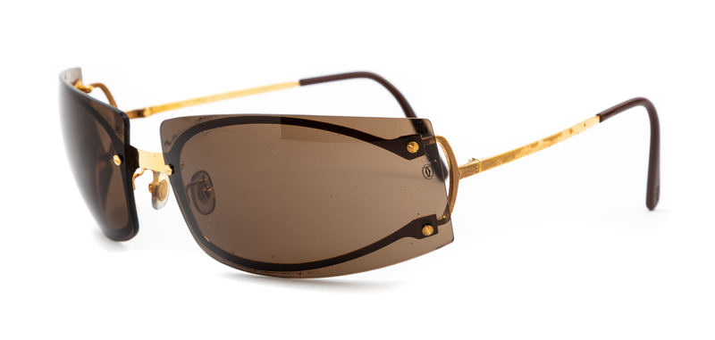 goldtone, tan/brown lenses, together with red cartier sunglass case and matching red box. Stamp: Cartier, Made in France. 75/15.