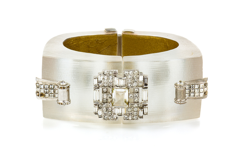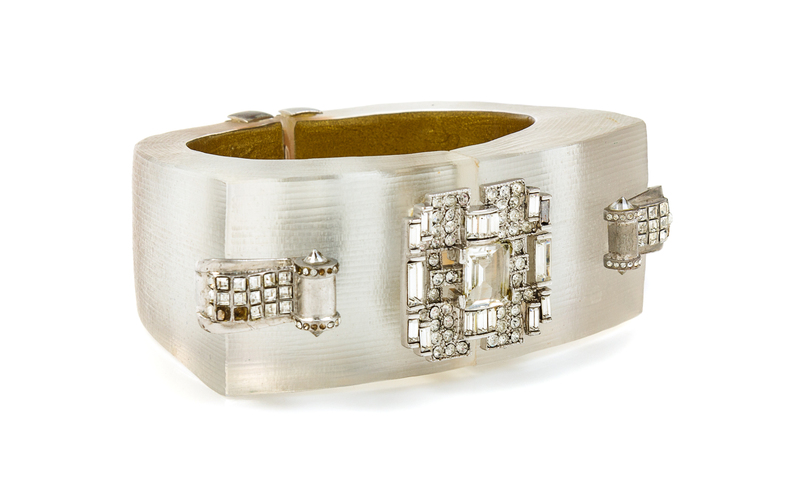 Alexis Bittar Art Deco Lucite Cuff, 1980s 6.5" Diameter x 1.25" W x 2.25" H