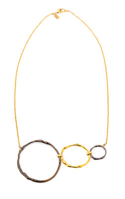 goldtone chain with three circles; two black circles with a center goldtone circle. Stamp: Alexis Bittar.