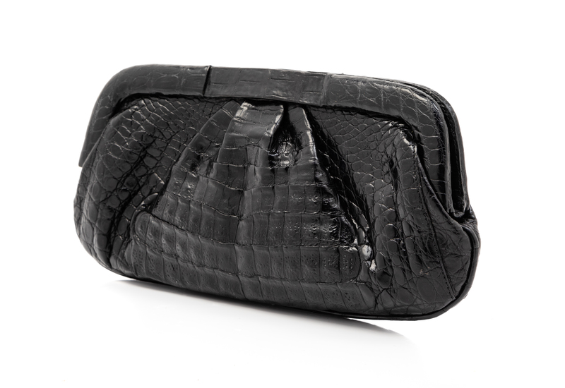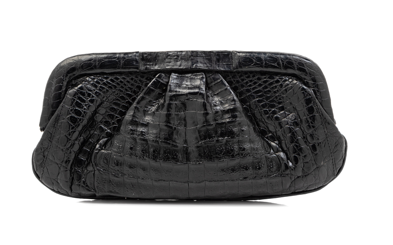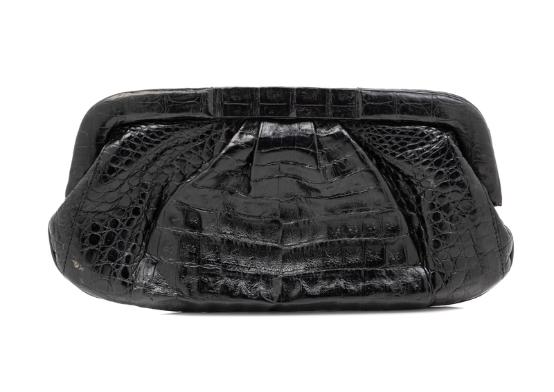 Nancy Gonzalez Black Crocodile Leather Clutch, 1980-90s