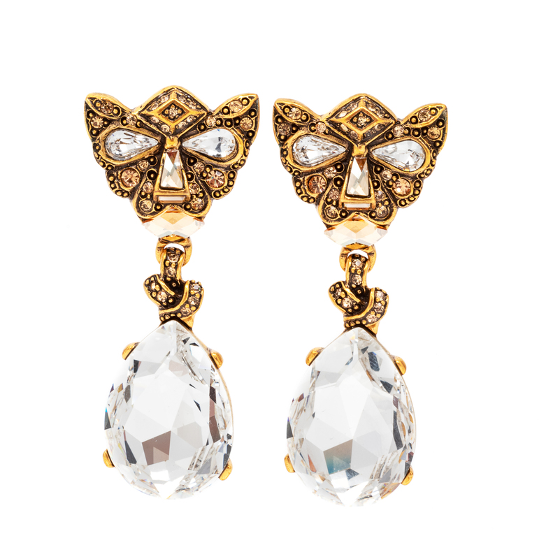 goldtone with a clear rhinestone drop. Stamp: Oscar de la Renta.