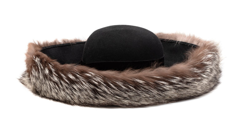 Patricia Underwood Black Felt with Fur Trim Hat, 1990-200s