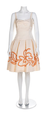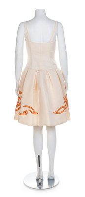 Roland Nivelias White Dress with Print and Embroidery, 1990-2000s