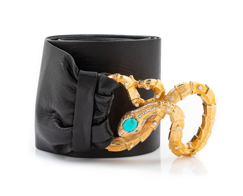 Valentino Black Leather with Goldtone Snake Belt, 1980-90s