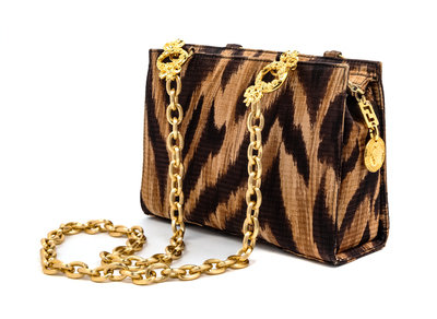 Versace Animal Print Shoes and Handbag, 1990s Handbag: 9.25" L x 2.75" W x 6.25" H; shoes: 37.5