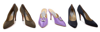 Goldtone studsLabel: Gianni Versace, Made in Italy Purple mulesLabel: Atelier VersaceBlack Label: Atelier Versace