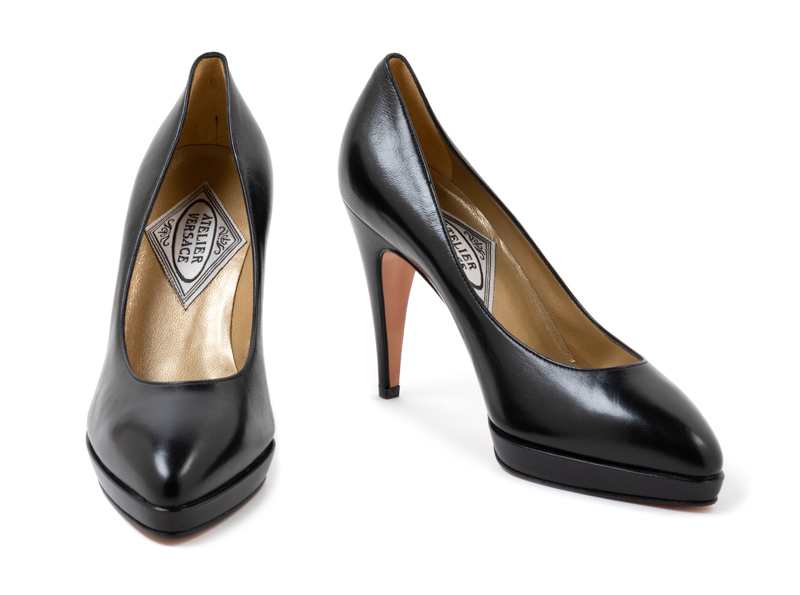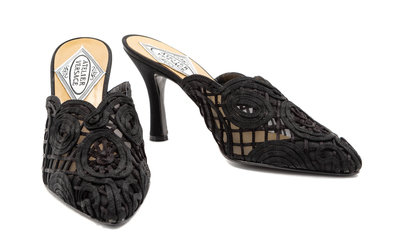 Atelier Versace Black Net and Braid Shoes, 1990s