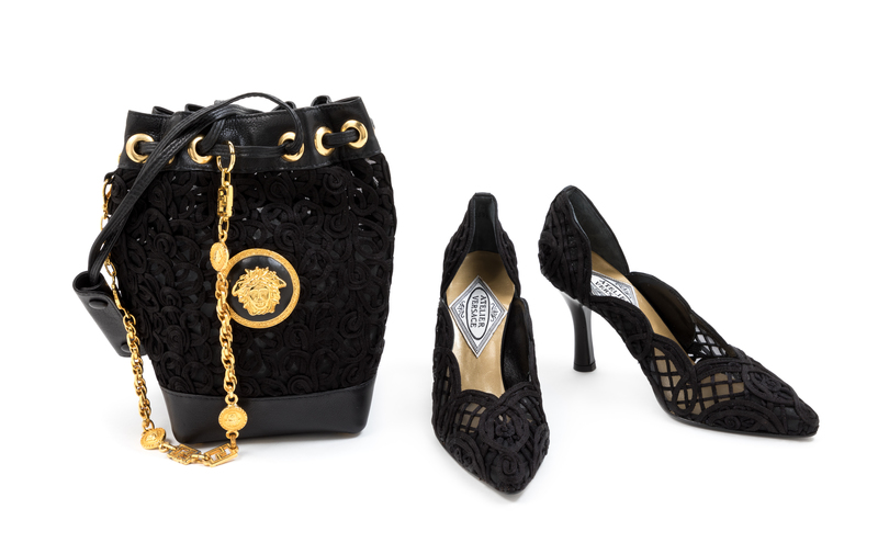 Gianni Versace Drawstring Handbag with a Pair Sheer Heels, 1990s