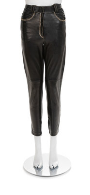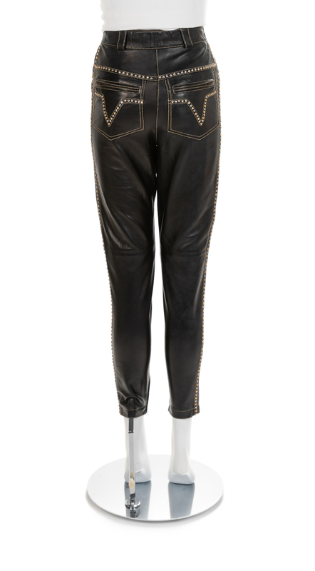 Gianni Versace Black Leather Pants with Rhinestones, 1990s No size label
