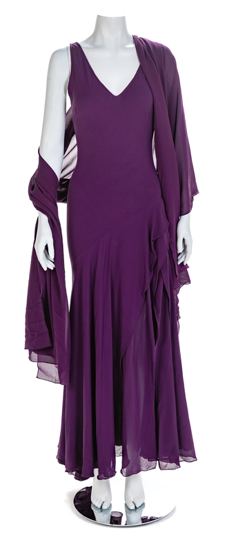 Atelier Versace Purple Bias-Cut Evening Dress with Shawl, 1990s No size label