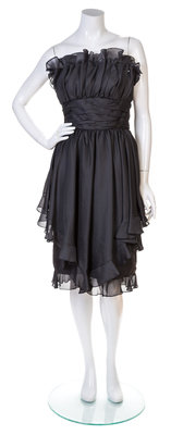 Victor Costa Black Strapless Cocktail Dress, 1980s Size label: 8