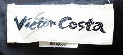 Ruffle detail at the bust, a pleated waist and a decorative ruffle hem.Label: Victor Costa