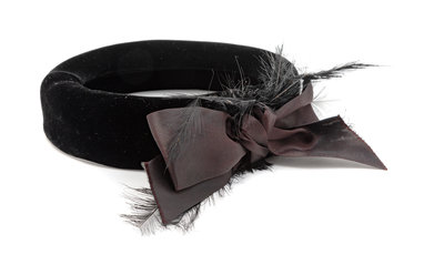 Yves Saint Lauren Black Hat with Bow and Feathers, 1970-80s