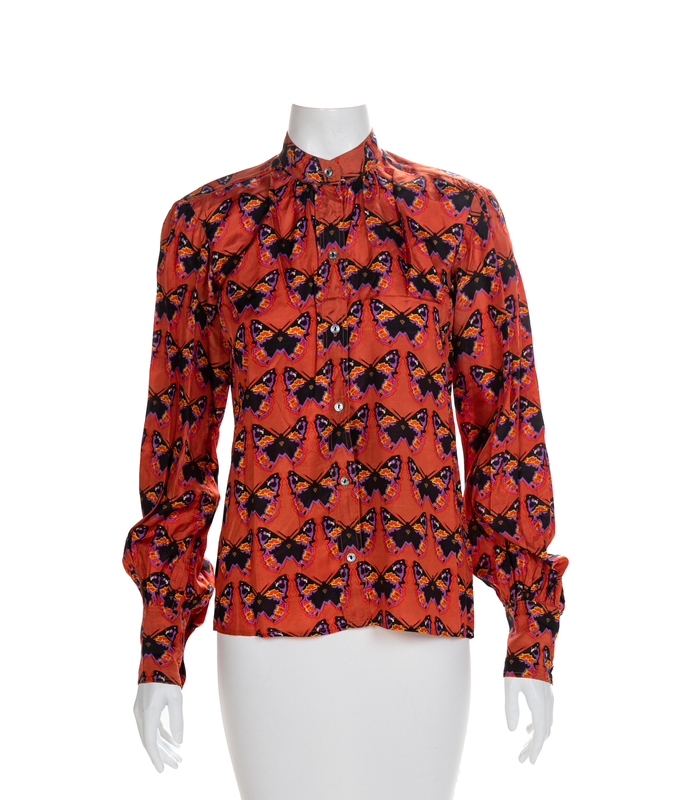 Yves Saint Laurent Butterfly Button-Up Blouse, 1980-90s Size label: 40