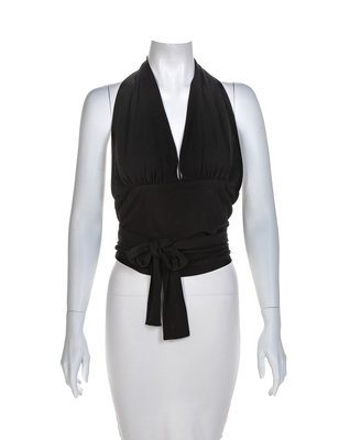 Yves Saint Laurent Rive Gauche Black Halter Top, 1970-80s Size label: 38