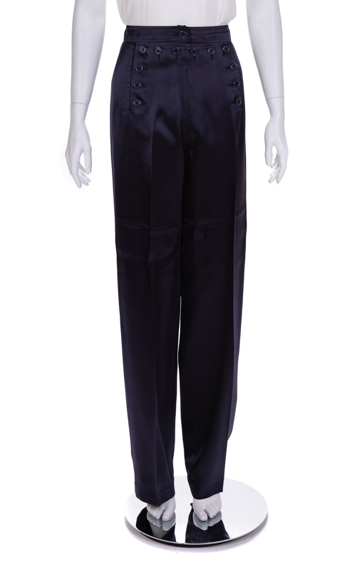 Two Pairs of Saint Laurent Rive Gauche Sailor Pants, 1980-90s Navy size: 40; Black size: 42