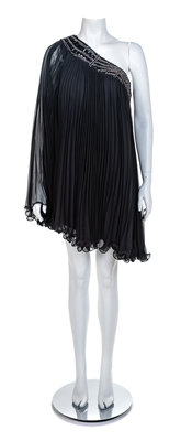 Jovani Black Pleated One-Shoulder Mini-Dress, 1990-2000s Size label: 6