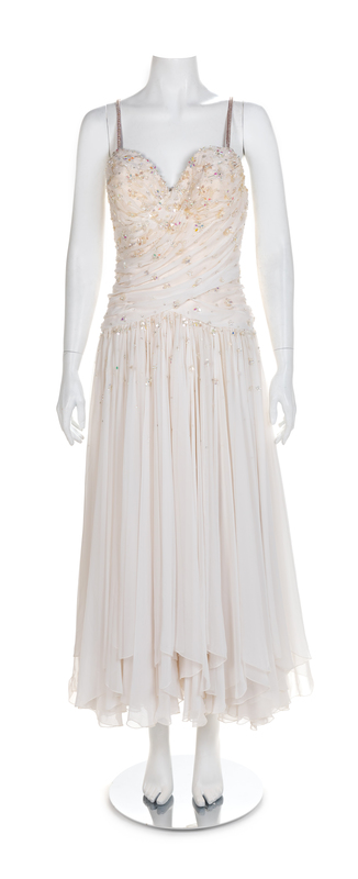 Two Draped and Beaded Chiffon Dresses, 1980-90s