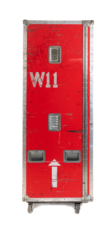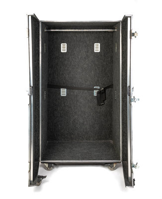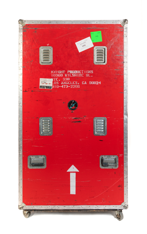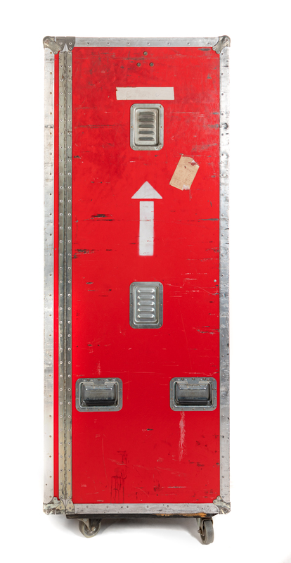 grey lining with one interior strap, wheels with push down lock. Used by Natalie Cole when touring.