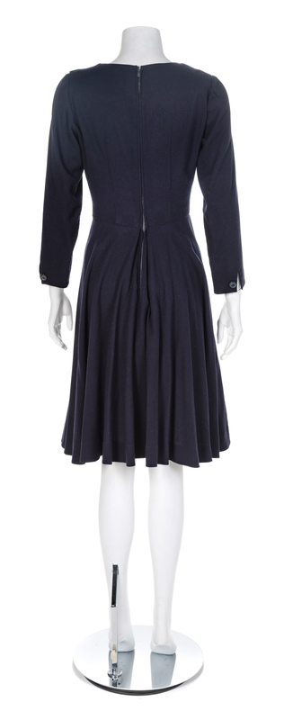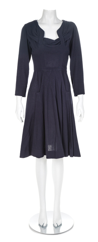 Returned to Owner: Jacques Fath Navy Wool Dress, 1950s No size label