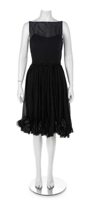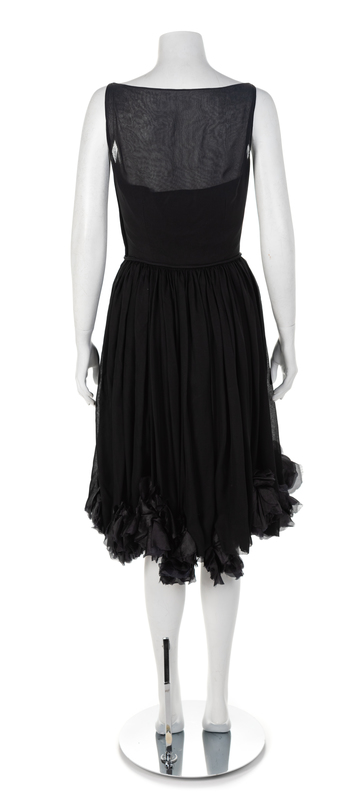 Maurice Rentner Black Silk with Flower Hem Dress, 1950s Size label: 10