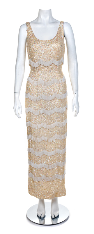 Ivory Beaded Fringe and Sequin Dress, 1960s