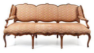 A Regence Style Walnut Canape Height 36 7/8 x width 78 x depth 29 inches.