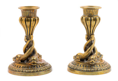 A Pair of Gilt Bronze Candlesticks Height 6 inches.