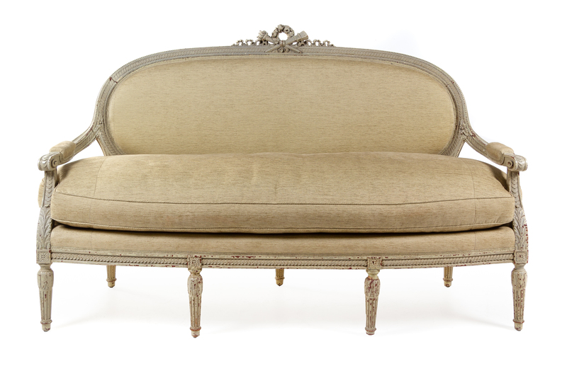 A Louis XVI Painted Sofa Height 44 1/2 x width 72 inches.