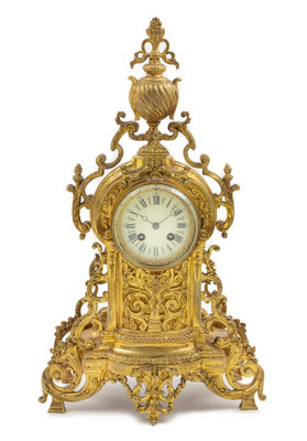 A French Neoclassical Gilt Metal Mantel Clock Height 20 3/4 x width 11 1/2 x depth 4 inches.