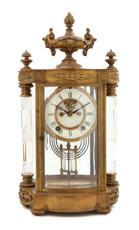 A French Gilt Bronze and Cut Glass Regulator Clock Height 17 1/2 x width 8 x depth 5 inches.
