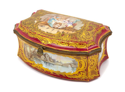 A Sevres Style Porcelain Table Casket Width 12 1/2 inches.