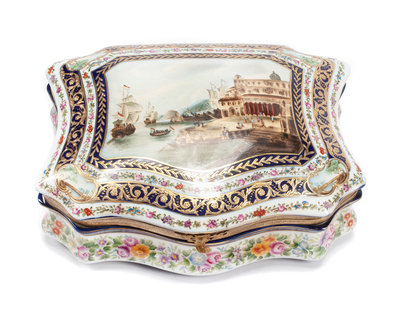 A Sevres Style Porcelain Table Casket Width 12 inches.
