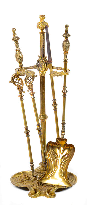 A Set of French Gilt Bronze Fireplace Tools Height of stand 29 5/8 inches.