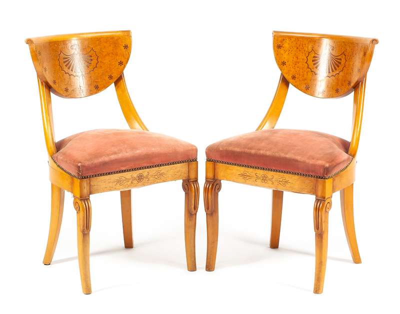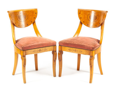 A Pair of Baltic Fruitwood Side Chairs Height 32 inches.
