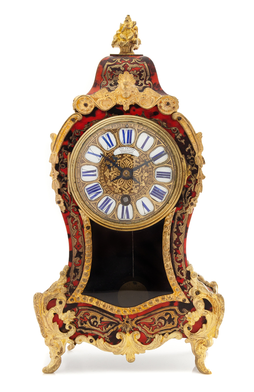 in the Napoleon III taste, the segmented enameled dial with Roman numeral hours, signed Joh. Peters Dusseldorf.