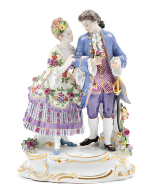 A Meissen Porcelain Figural Group Height 7 1/2 inches.