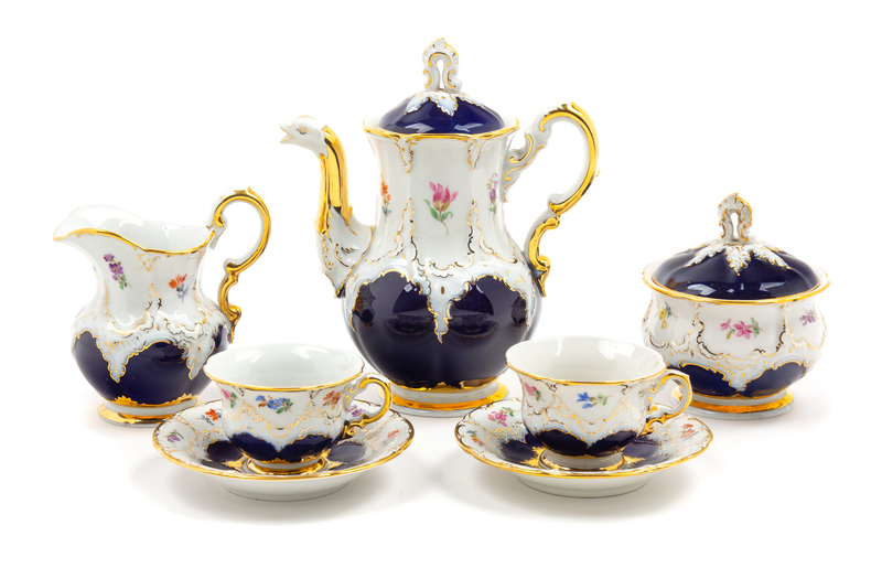A Meissen Porcelain Tea Service Height of teapot 8 inches.