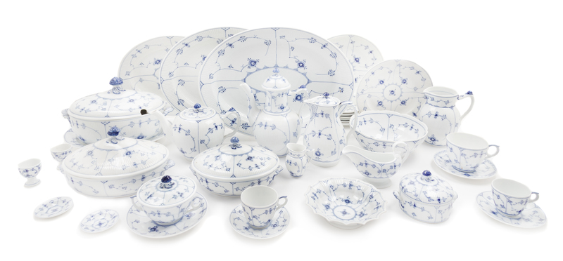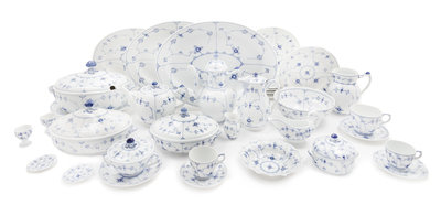 An Assembled Royal Copenhagen Porcelain Dinner and Tea Service Diameter of dinner plates 9 3/4 inches.