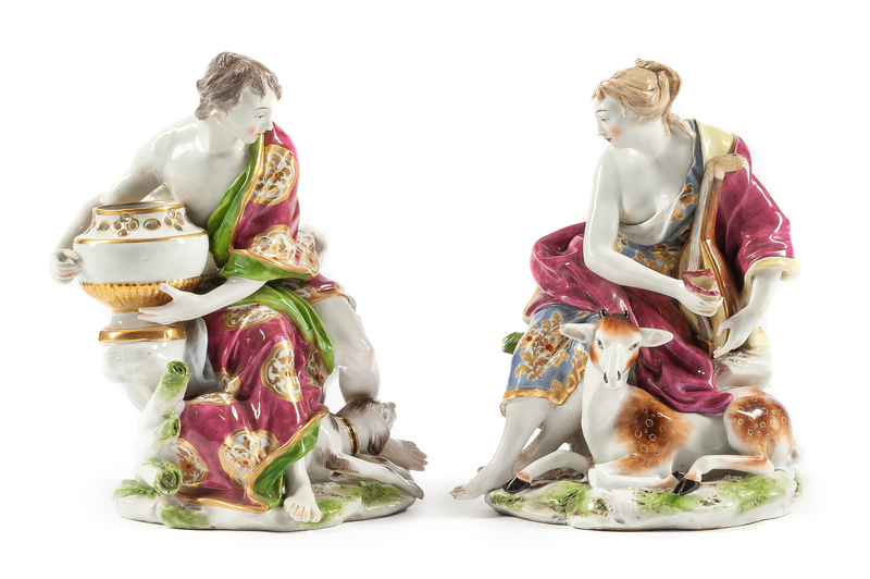 A Pair of Continental Porcelain Figural Groups Height 9 1/2 inches.